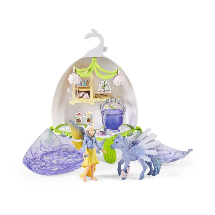 Inhoud | 1x dierenkliniek met kast, 1x dierenarts Sera, 1x Pegasusveulen, 2x lampion, 1x bloemenguirlande, 1x elfenketel, 1x pollepel, 1x bril, 1x spuit, 2x paddenstoel, 1x kapje, 1x stethoscoop, 2x bloemenzwachtel |
