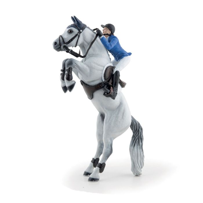Productbeschrijving | Dit is een handgeschilderd en gedetailleerde figuur van een paard met ruiter. In deze set is ruiter Penelope afgebeeld in een dynamische houding, samen met haar paard Mylord, in de vroege fase van een sprong. De set komt geleverd met de ruiter en de afgebeelde accessoires zoals een zadel en halster. |